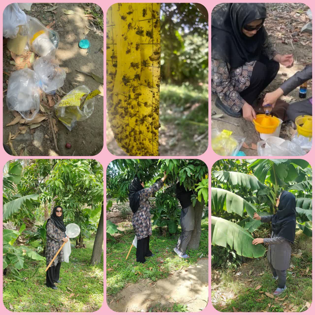 در این بازدید که توسط خانم دکتر بساوند محقق مرکز تحقیقات و خانم دکتر انصاری انجام شد. تعویض تله های چسبی و تله های مکفیل (حاوی فرمون و پروتئین هیدرولیزات) انجام شد که این تله ها جهت بررسی جمعیت و فون مگس های میوه نصب شده است. علاوه بر این بازدید از وضعیت آفات و بیمارگرها در باغات و توصیه های فنی لازم انجام شد و نمونه برداری از درختان خرما و موز جهت بررسی های آزمایشگاهی نیز انجام شد.